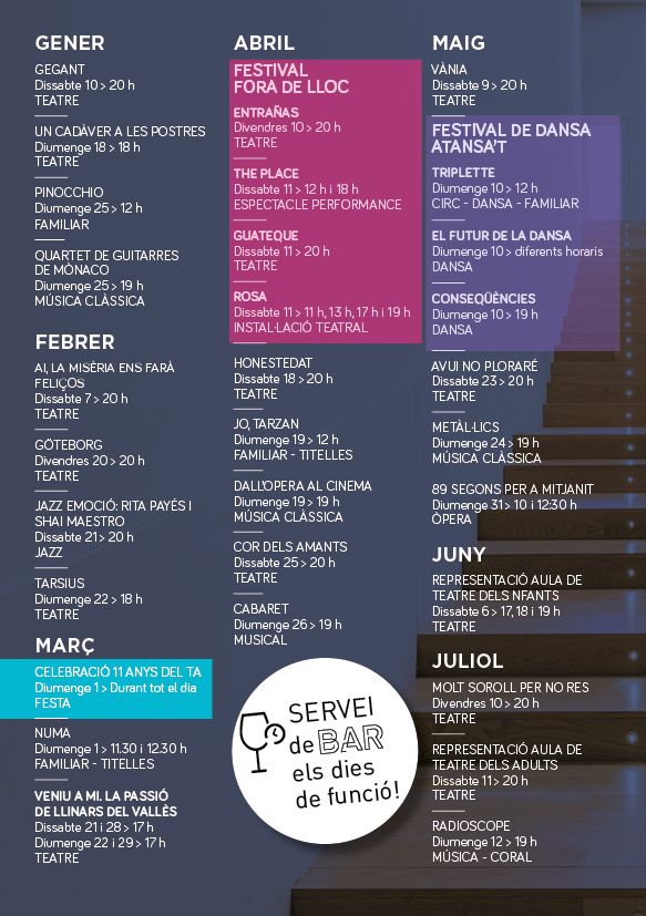 Inclou tots els espectacles de música i de teatre.
