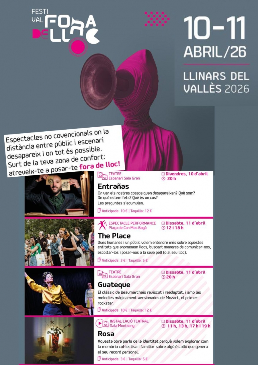 El Festival FORA DE LLOC és una proposta d'espectacles no convencionals on la distància entre el públic i l'escenari desapareix i on tot és possible.